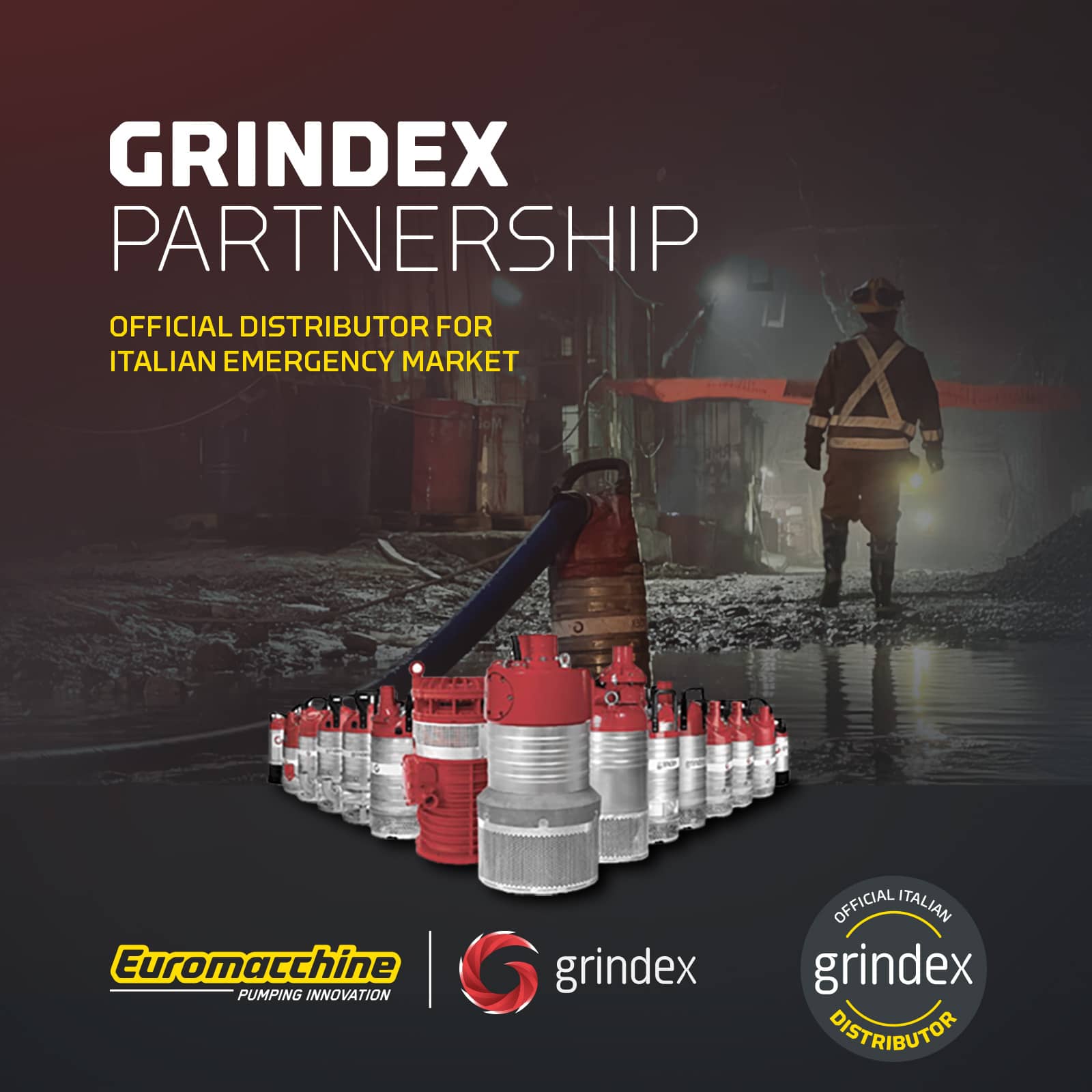 We are proud to announce that EUROMACCHINE - Pumping Innovation is the new official distributor of GRINDEX submersible pumps for the Emergency sector in Italy.